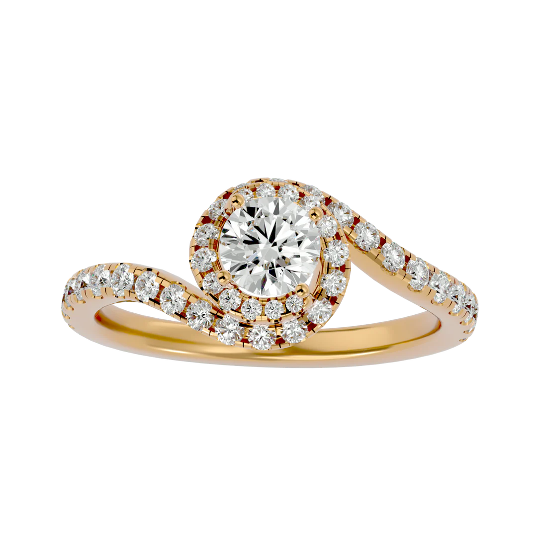 Where brilliance meets divine design. The Oura Halo ring features a stunning round-cut center diamond, embraced by a radiant halo and a gently twisting band of diamonds that shimmer with every movement. Crafted in rich gold, this piece captures the essence of celestial elegance and eternal love—a halo of light, forever yours.